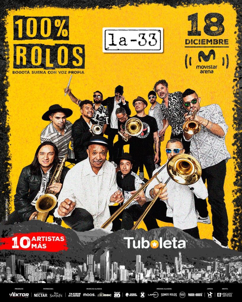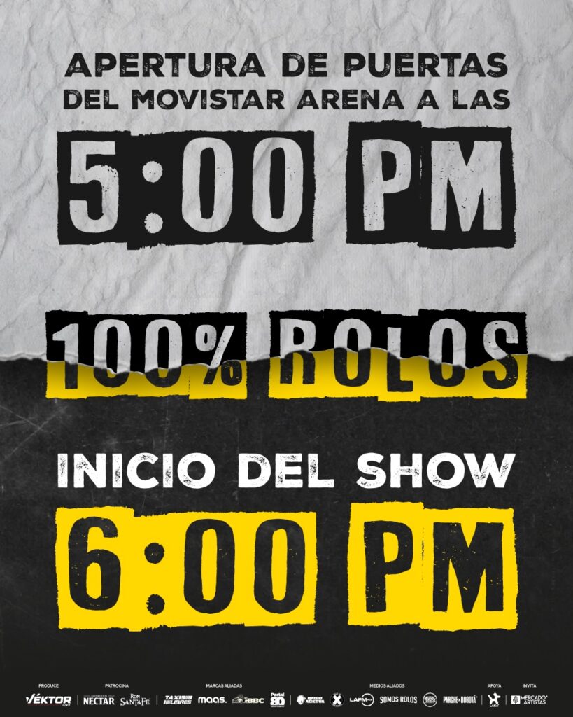 El 18 de diciembre de 2025, el festival 100% Rolos se tomará el Movistar Arena de Bogotá con puertas abiertas a las 5:00 p. m. y concierto desde las 7:00 p. m.. Será un evento dedicado al talento local, donde artistas rolos celebrarán su identidad musical en una noche de comunidad, energía y cultura bogotana.