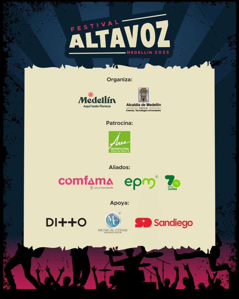 La Secretaría de Cultura Ciudadana cuenta con diferentes programas que promueven el desarrollo de los proyectos musicales, la sostenibilidad y la circulación, todas las bandas cuentan con acceso a estos programas, además de los que tiene actualmente Medellín con otras entidades públicas y privadas, que otorgan un abanico amplio de oportunidades. - ¿Cómo se articula la línea “Altavoz Ciudad” para que el festival no sea solo tres días en un parque, sino un proceso vivo durante el año?