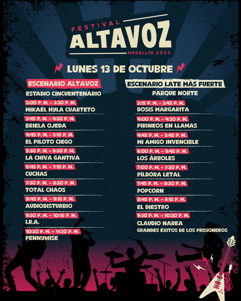 Altavoz muestra que la identidad cultural colombiana es mucho más amplia que lo comercial: somos rock, punk, reggae, metal, ska, sonidos alternativos. Contar con este programa de ciudad permite la formación de públicos y el fomento a nuevas propuestas musicales de la escena alternativa. - En un país marcado por desigualdades, ¿cómo logra el festival ser un espacio de inclusión y representación de voces que rara vez aparecen en la radio nacional?