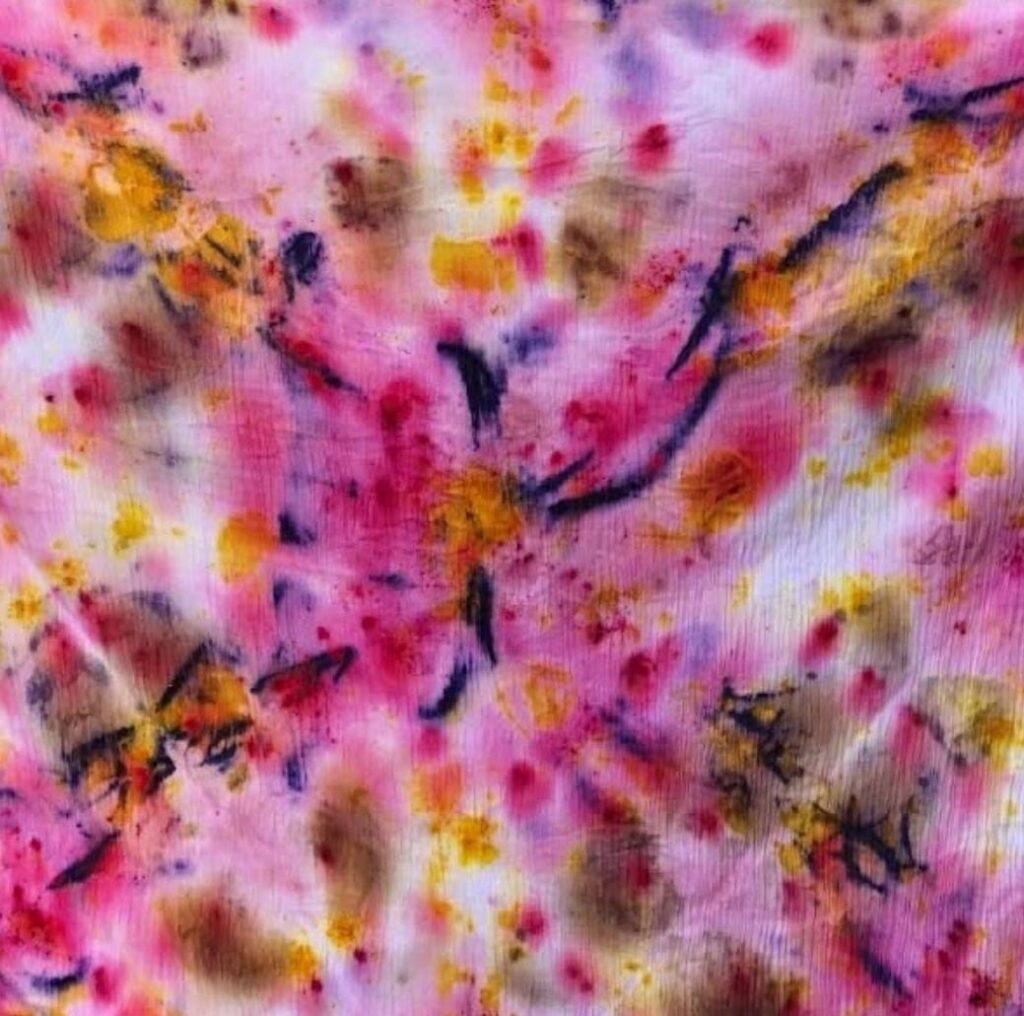 Así nació Floreale, su estudio de flores, hierbas, cortezas, hongos, barros y todos los tesoros que la naturaleza nos regala para convertirlos en color. Johanna trabaja únicamente con fibras naturales como algodón, seda, lana, cáñamo o fibra de bambú, siempre buscando el equilibrio entre belleza, consciencia y sostenibilidad.