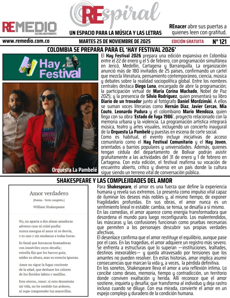 RESPIRAL . Boletín 121 – 11.25.2025 Martes noviembre 25/2025 elremedioderocko@gmail.com REspiral 0 Email * Suscribirse Daniel MordzinskiDiego LunaEstado de Fuga 1986Hay Festival 2026Hay Festival ComunitarioJavier CercasLeonardo PaduraMario MendozaOrquesta La PambeléShakespeareSilvio Rodríguez