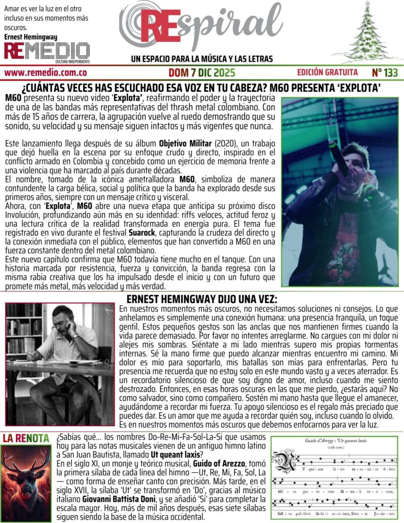 RESPIRAL . Boletín 133 – 12.7.2025 Domingo diciembre 7/2025 elremedioderocko@gmail.com REspiral 0 Email * Suscribirse Ernest HemingwayExplotaGiovanni Battista DoniGuido de ArezzoM60Objetivo MilitarSua Rock Varón del Sol 2025Ut queant laxis