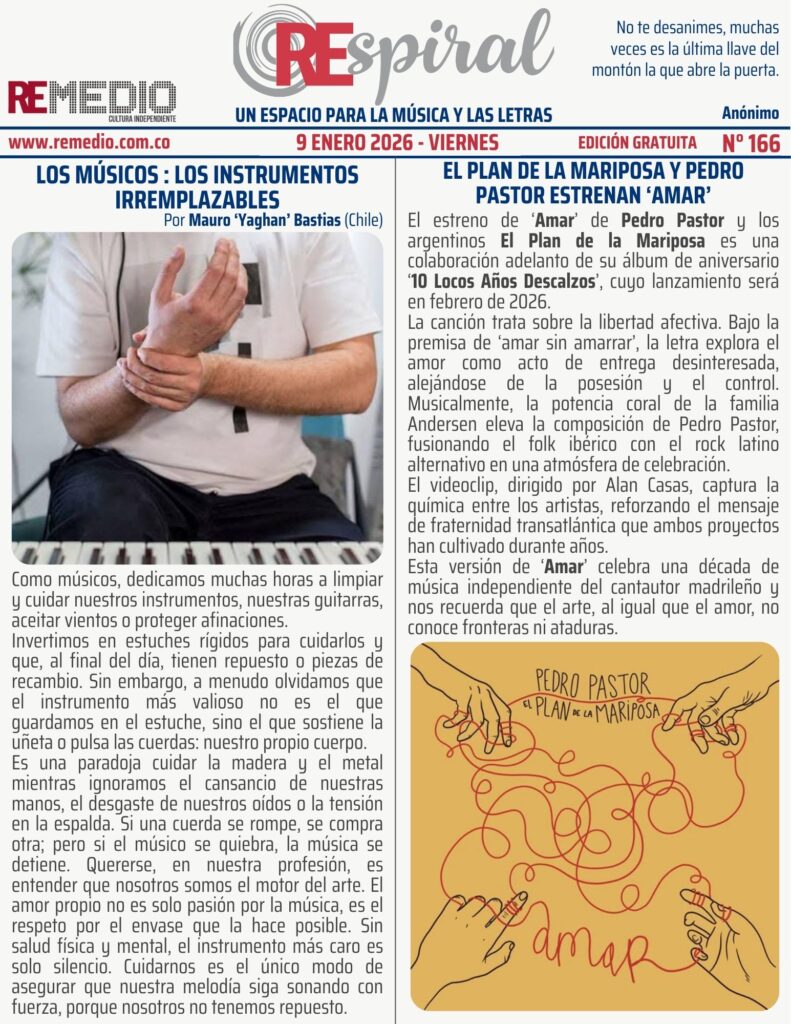 RESPIRAL . Boletín 166 – 1.9.2026 Viernes enero 9/2026 elremedioderocko@gmail.com REspiral 0 Email * Suscribirse 10 Locos Años DescalzosEl Plan de la MariposaMauro BastidasPedro Pastor