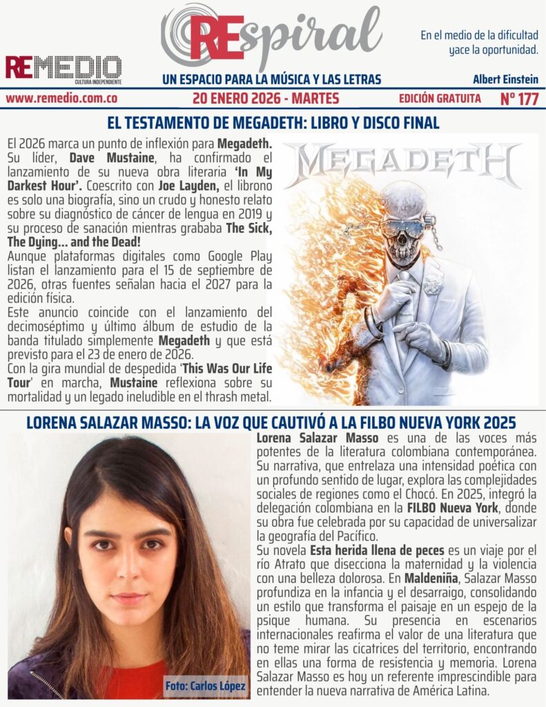 RESPIRAL . Boletín 177 – 1.20.2026 Martes enero 20/2026 elremedioderocko@gmail.com REspiral 0 Email * Suscribirse Dave MustaineEsta Herida Llena de PecesFilbo Nueva YorkIn My Darkest HourJoe LaydenLorena Salazar MassoThe Dying... and the Dead!The Was Our Life Tour