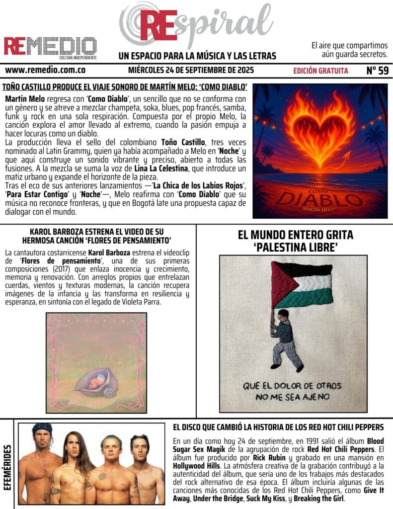 La producción lleva el sello del colombiano Toño Castillo, tres veces nominado al Latin Grammy, quien ya había acompañado a Melo en ‘Noche’ y que aquí construye un sonido vibrante y preciso, abierto a todas las fusiones. A la mezcla se suma la voz de Lina La Celestina, que introduce un matiz urbano y expande el horizonte de la pieza.