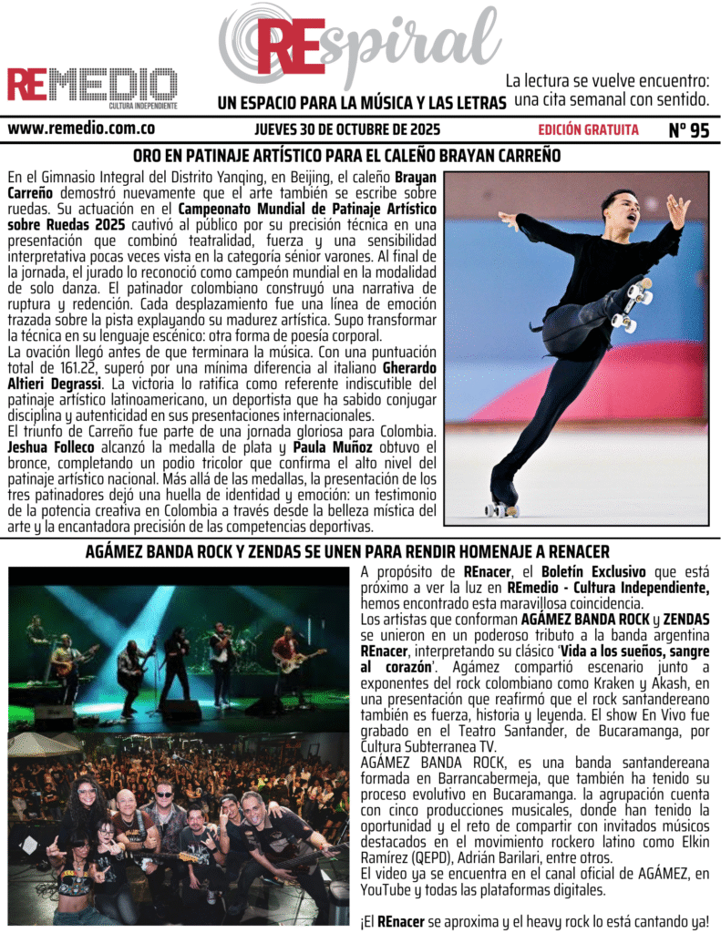 El triunfo de Carreño fue parte de una jornada gloriosa para Colombia. Jeshua Folleco alcanzó la medalla de plata y Paula Muñoz obtuvo el bronce, completando un podio tricolor que confirma el alto nivel del patinaje artístico nacional. Más allá de las medallas, la presentación de los tres patinadores dejó una huella de identidad y emoción: un testimonio de la potencia creativa en Colombia a través desde la belleza mística del arte y la encantadora precisión de las competencias deportivas.