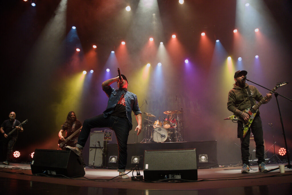 La apertura estuvo a cargo de Quemarlo Todo, agrupación santandereana que ha ido ganando terreno en la escena desde su formación en 2022. Sus integrantes —entre ellos Sergio Mitch (Barbarie, Ultradeath) en la batería y Paco Triana (Burden of Hate) en la voz— encendieron el teatro con una mezcla abrasiva de death, thrash, grind y destellos stoner.